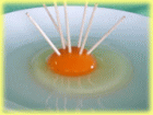 そんなニワトリのために ハーブ(消化を助け、ストレス解消)、木酢・竹酢酸、海藻(ビタミン、ミネラルを補う)など7種類以上の自然素材を独自にブレンドした餌を給与しています。水も ハーモニーウォーターSP-10による蘇生水を鶏に飲ませています。